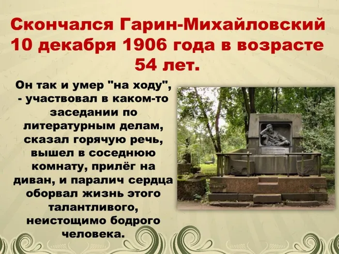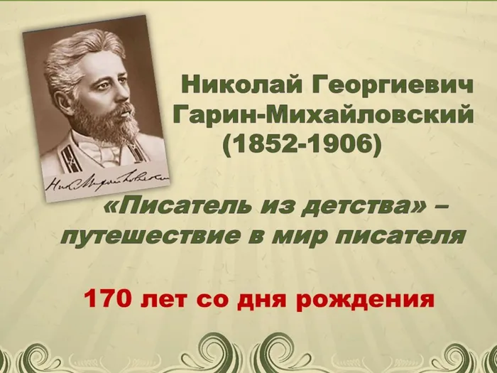 20 февраля 2022 года исполнилось 170 лет со дня рождения известного русского писателя, путешественника, инженера и строителя железных дорог Николая Георгиевича Гарина-Михайловского (Гарин – появившийся позже псевдоним).
